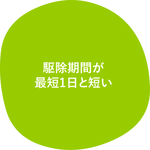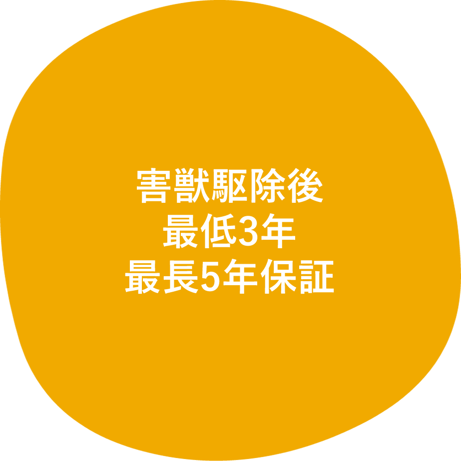 スピード駆除、駆除後の最低3年、最長5年の保証をいたします。