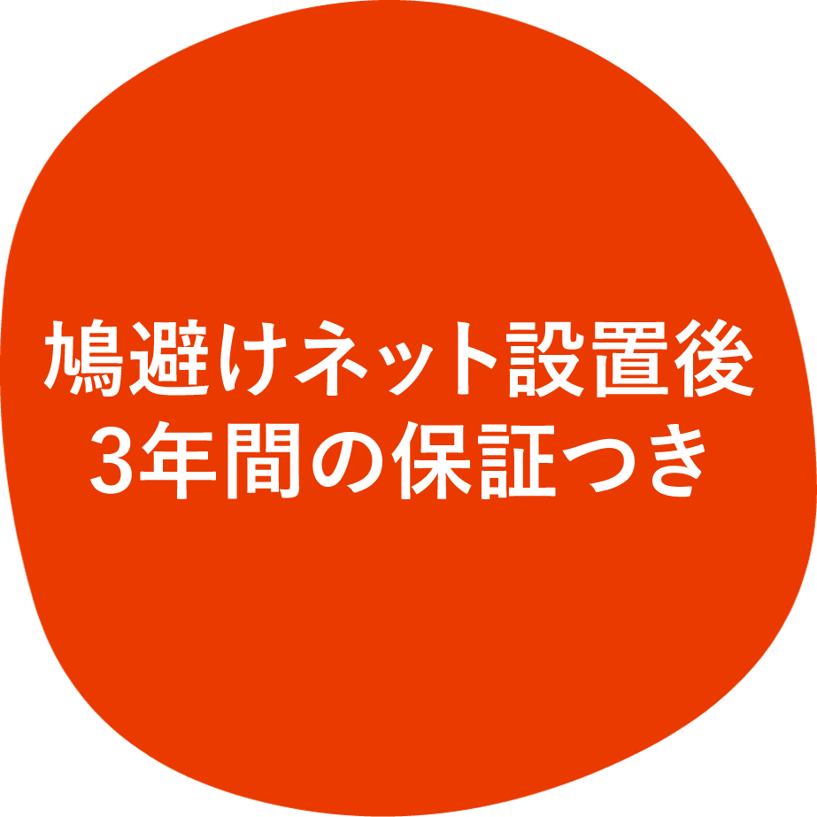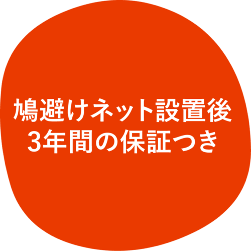 鳩避けネット設置後3年間の保証付