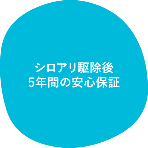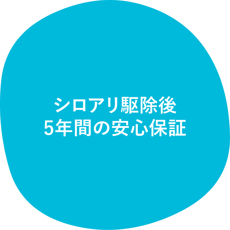 現在使われているシロアリ駆除の薬剤は効果が5年間持続します。一般的に、薬剤の効果に応じて5年間の保証がついています。シロアリが再発した場合は、保証期間内であれば何度でも無償で対応いたしますので、ご安心ください。