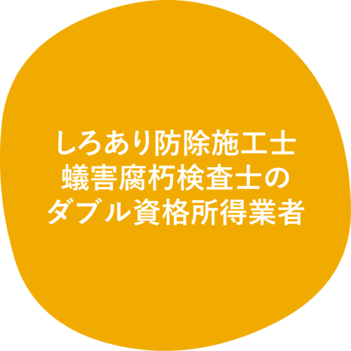 当社は、しろあり防除施工士・蟻害腐朽検査士のダブル資格所得業者です