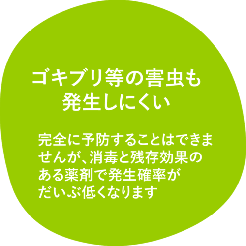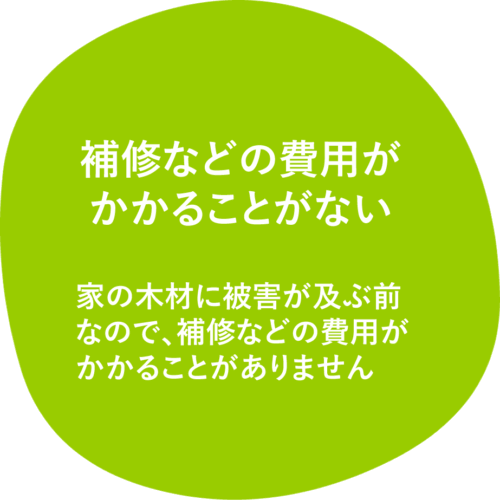 ただし、リフォーム時などに新たな木材が加えられた場合や、洪水や雨漏りなどが起こった場合は、シロアリ駆除の薬剤が効果を失ったり、シロアリが発生する可能性があります。そのため、これらは保証対象外とさせていただいておりますが、シロアリ駆除施工後、現状維持のままであれば、全て保証対象となりますのでどうぞご安心ください。